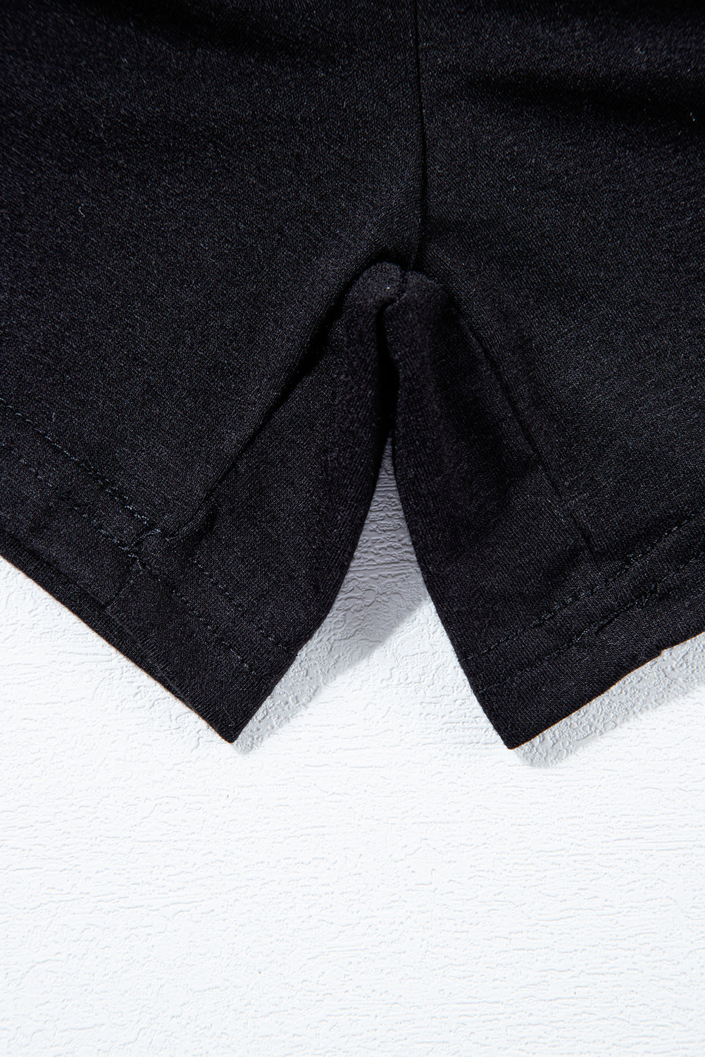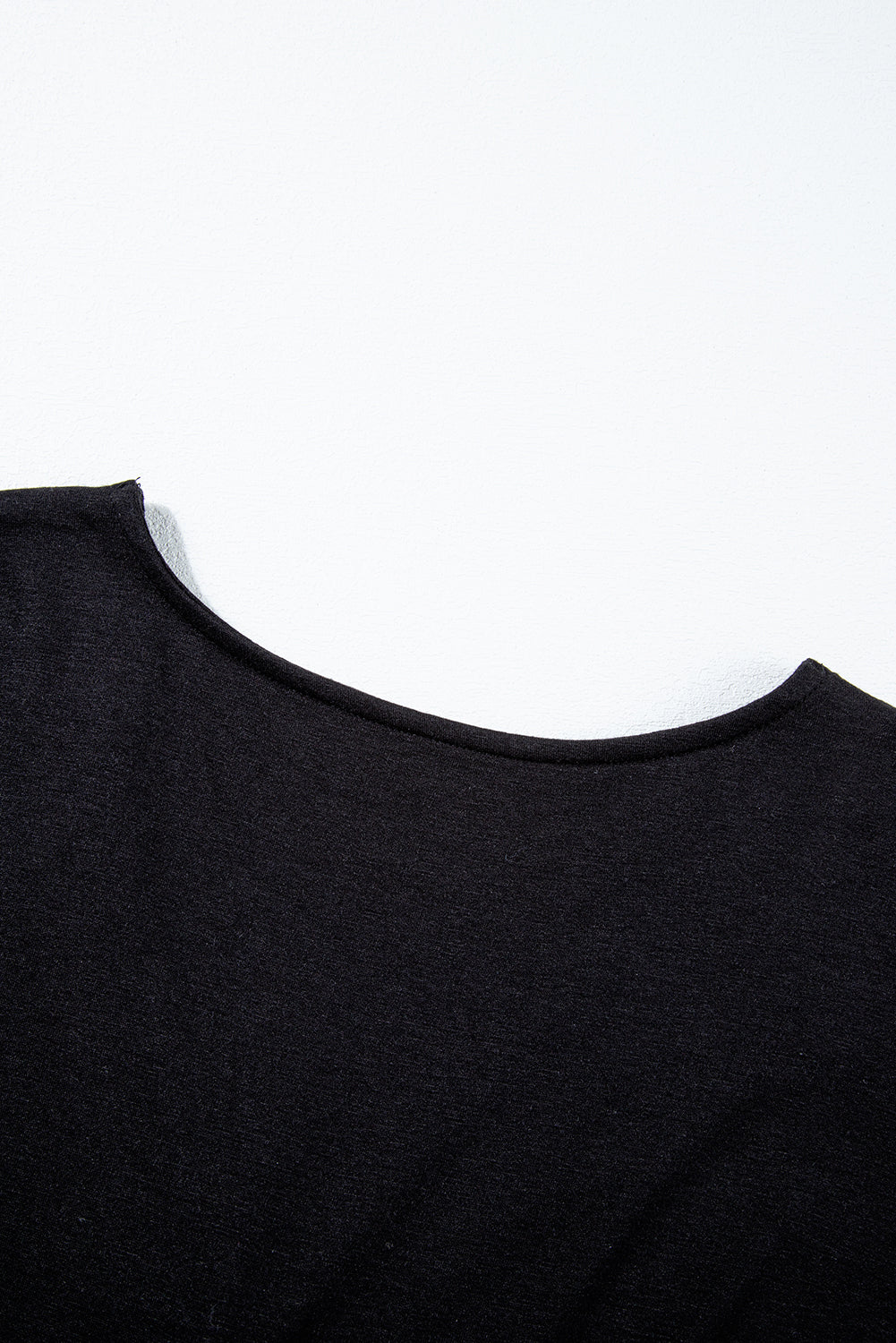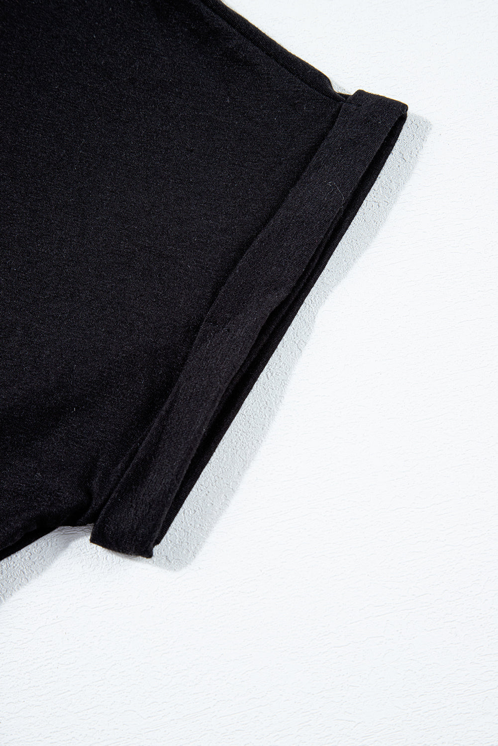 Black V Neck Buttons Loose Cuffed Short Sleeve Romper