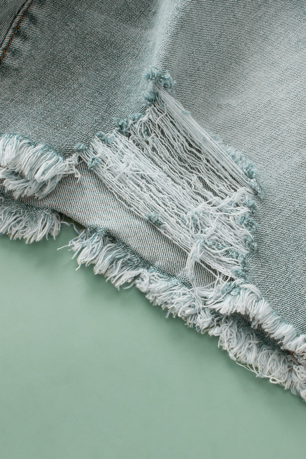 Light Blue Plus Size Distressed Rolled Hem Denim Shorts