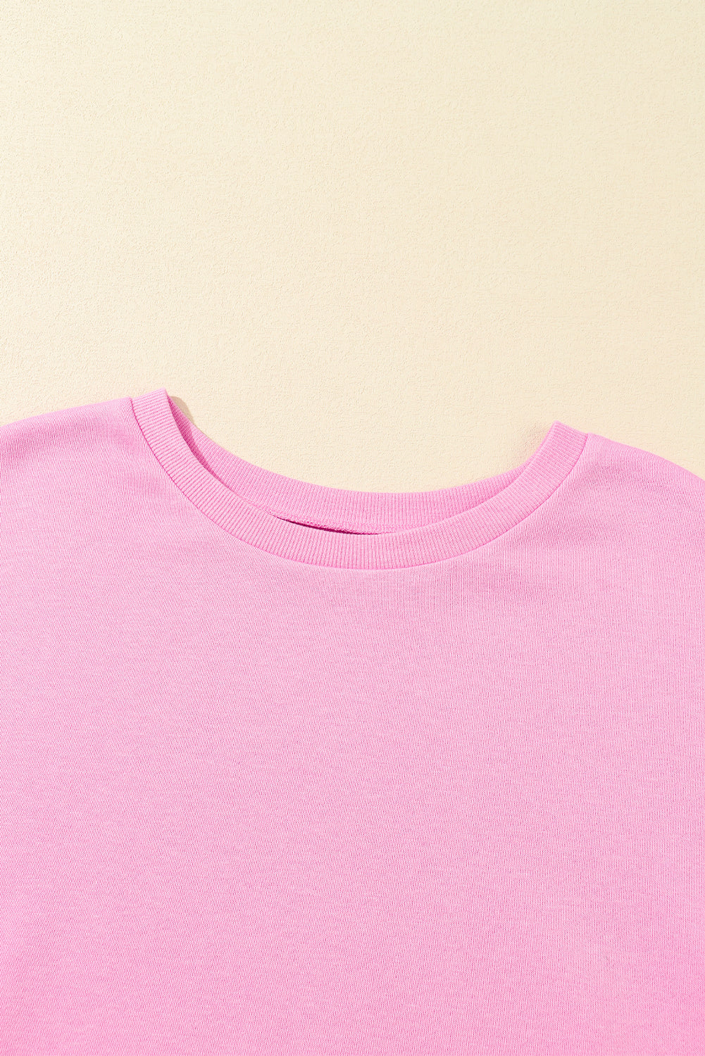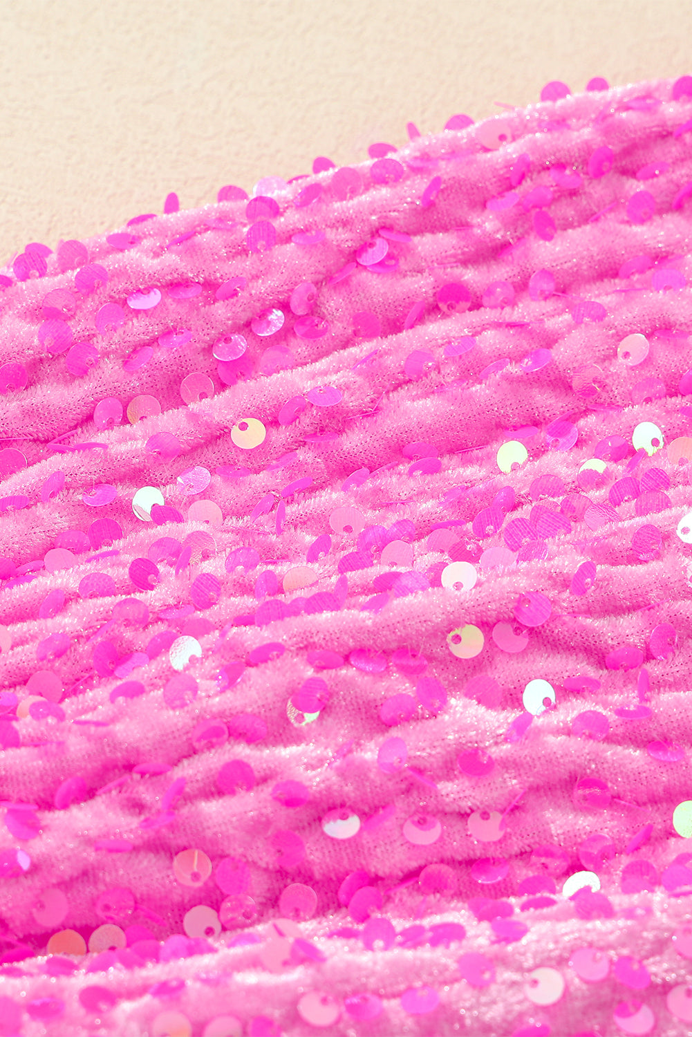 Pink Sequin Patchwork Long Sleeve Pullover Top
